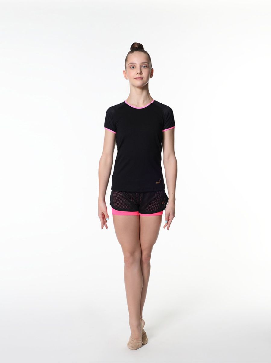 Футболка прилегающего силуэта с яркими кантами цвета розовый неон и вставкой из сетки предназначена для занятий спортом в качестве тренировочной формы или командной экипировки. Основная часть выполнена из эластичного хлопка, рукава – из трикотажной эластичной сетки обеспечивающей вентиляцию, что дает дополнительный комфорт во время тренировок. Стильная и яркая окантовка горловины и рукавов из блестящего атласа цвета розовый неон придаст новых красок повседневному образу и привлечет внимание к себе.