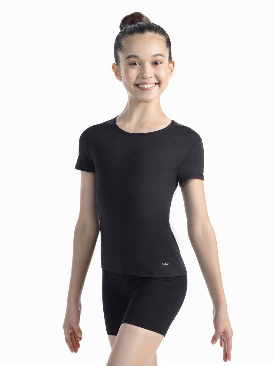 Базовая модель футболки с коротким рукавом для занятий гибкими видами спорта. • Модель выполнена из плотного и эластичного полиэстера, что придает ей высокую функциональность и универсальность. • Материал не только отводит влагу, но и позволяет телу свободно дышать, что особенно важно во время интенсивных тренировок. • Полуприлегающий силуэт футболки выгодно подчеркивает спортивную фигуру и не сковывает движений. • Золотистый логотип SOLO ярко подчеркивает фирменность и высокое качество футболки.