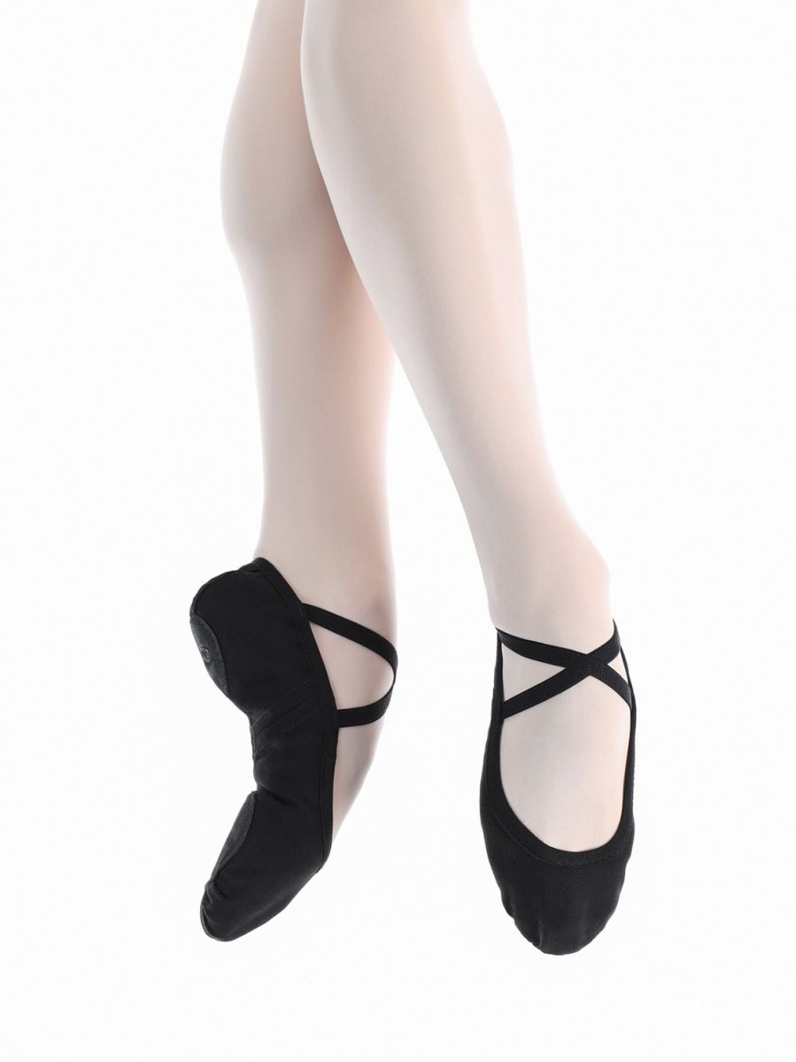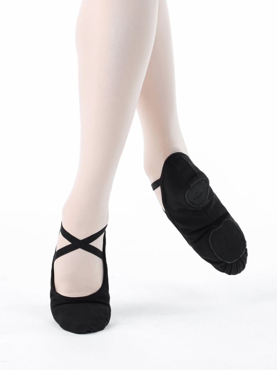 Балетные мягкие туфли (балетки) чёрного цвета средней закрытости Модель для стоп с низким и средним подъёмом. Стретч-ткань обеспечивает безупречное прилегание по форме стопы, комфорт и износостойкость. Срезы обработаны эластичной тесьмой. Раздельная подошва из натурального спилка. Резиночки пришиты крест-накрест, подчёркивая лучший вид ножки. Цвета балеток и трико Solo идеально сочетаются друг с другом. Модель предназначена для различных видов танцевального искусства. Эстетические свойства товара удовлетворят запросы профессионалов и требовательных любителей.