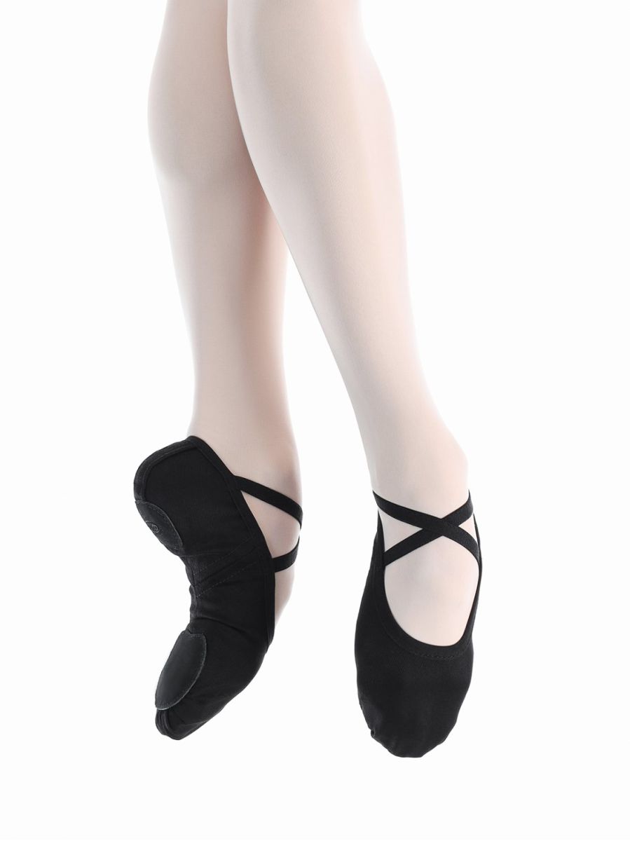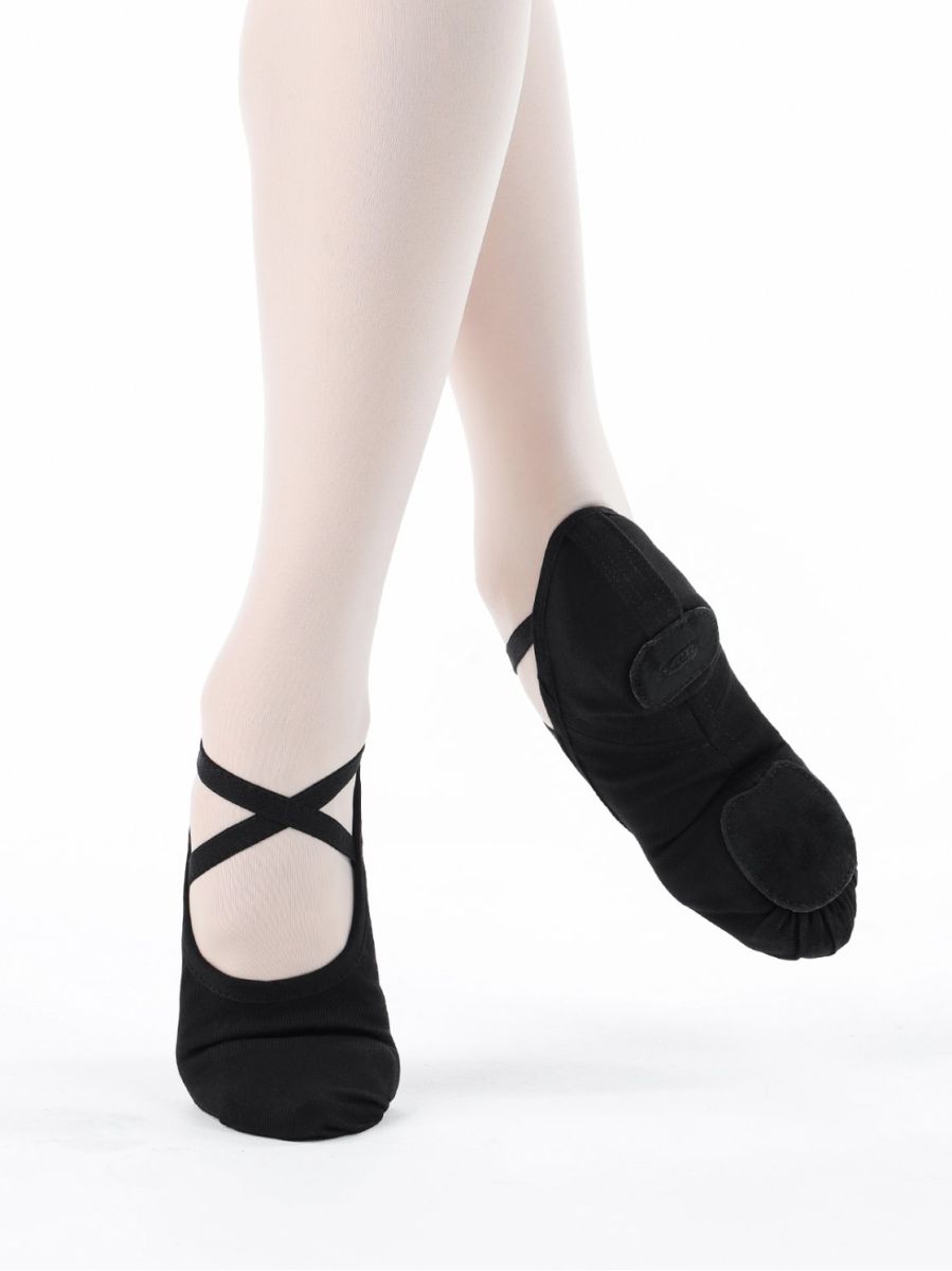 Балетные мягкие туфли (балетки) чёрного цвета высокой закрытости Модель для стоп с высоким подъёмом. Стретч-ткань обеспечивает безупречное прилегание по форме стопы, комфорт и износостойкость. Срезы обработаны эластичной тесьмой. Раздельная подошва из натурального спилка. Резиночки пришиты крест-накрест, подчёркивая лучший вид ножки. Модель предназначена для различных видов танцевального искусства. Эстетические свойства товара удовлетворят запросы профессионалов и требовательных любителей.