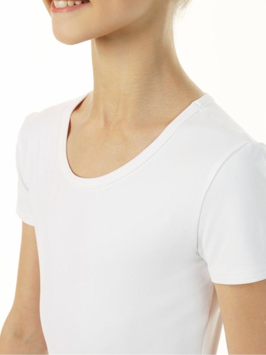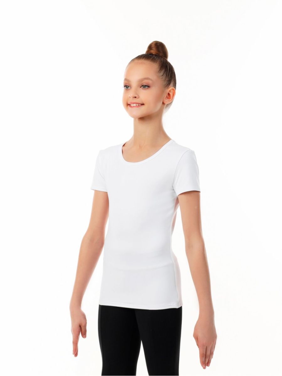 Удлиненная белая футболка из полиамида с коротким рукавом для занятий спортом и танцами. Благодаря составу из полиамида с высоким содержанием эластана отличается прочностью, эластичностью, комфортом и быстросохнущими влаговыводящими свойствами. Удлинённый приталенный крой предотвращает задирание ткани при активных движениях, позволяя сосредоточиться на достижении лучших результатов. Базовый белый цвет и качественная гладкая поверхность создают отличную базу для нанесения вышивки или декора, позволяя легко персонализировать изделие под свой стиль.