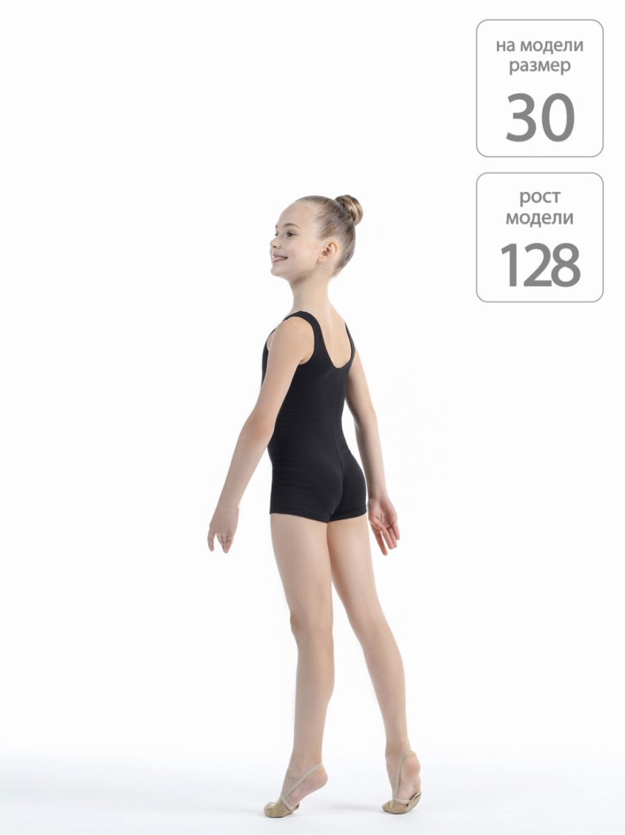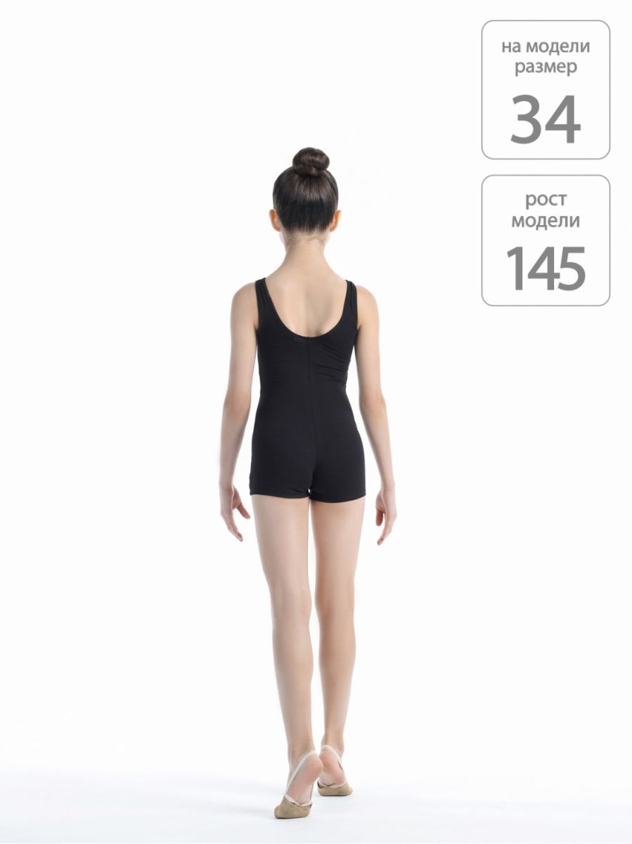 Комбинезон чёрного цвета прилегающего силуэта. Ширина бретелей - 3 см. Выкат спинки до середины лопаток, низ шортиками.