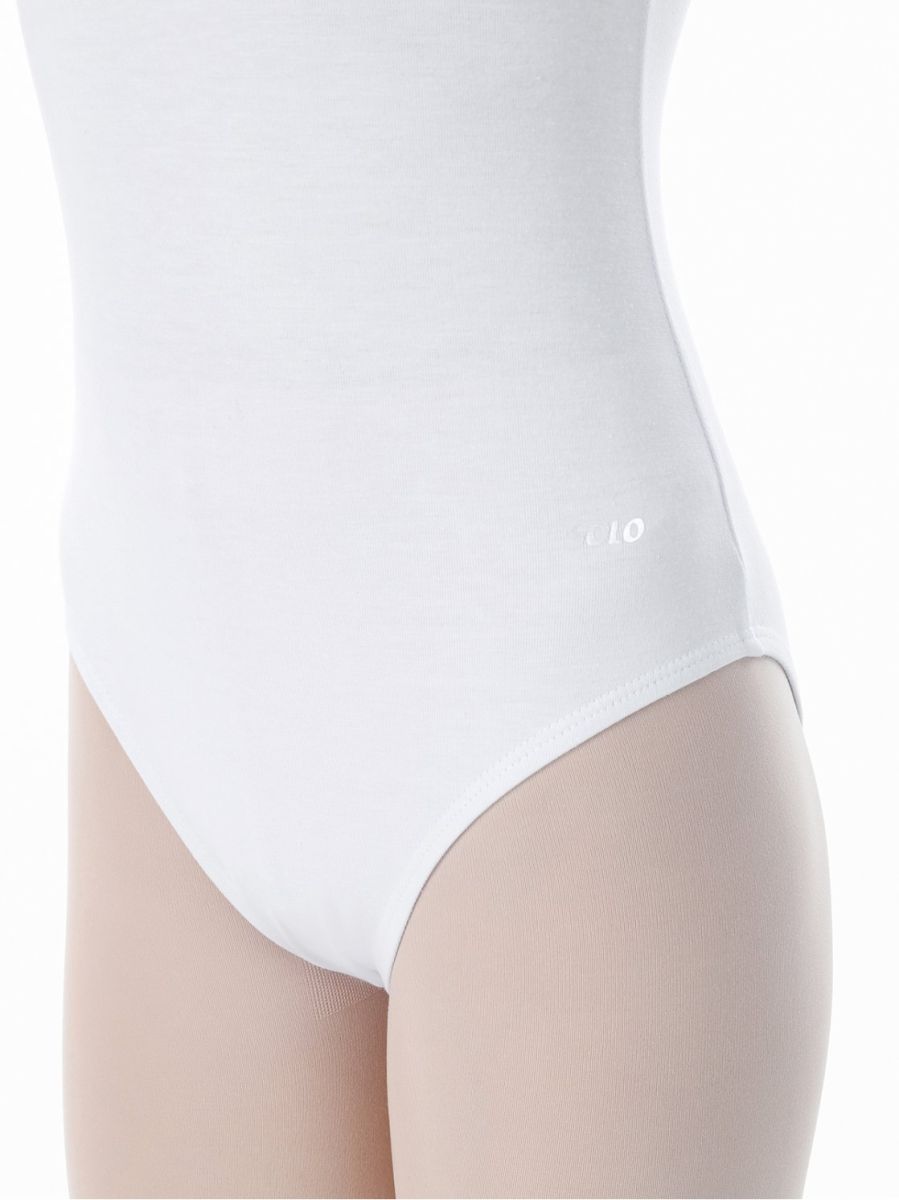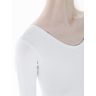 Классическая модель купальника белого цвета с рукавами длиной 3/4, круглый выкат спинки, средний окат ножки. Белым перламутром нанесен логотип Solo, что подтверждает фирменность изделий.