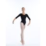 Классическая модель купальника чёрного цвета с рукавами длиной 3/4, круглый выкат спинки, средний окат ножки.