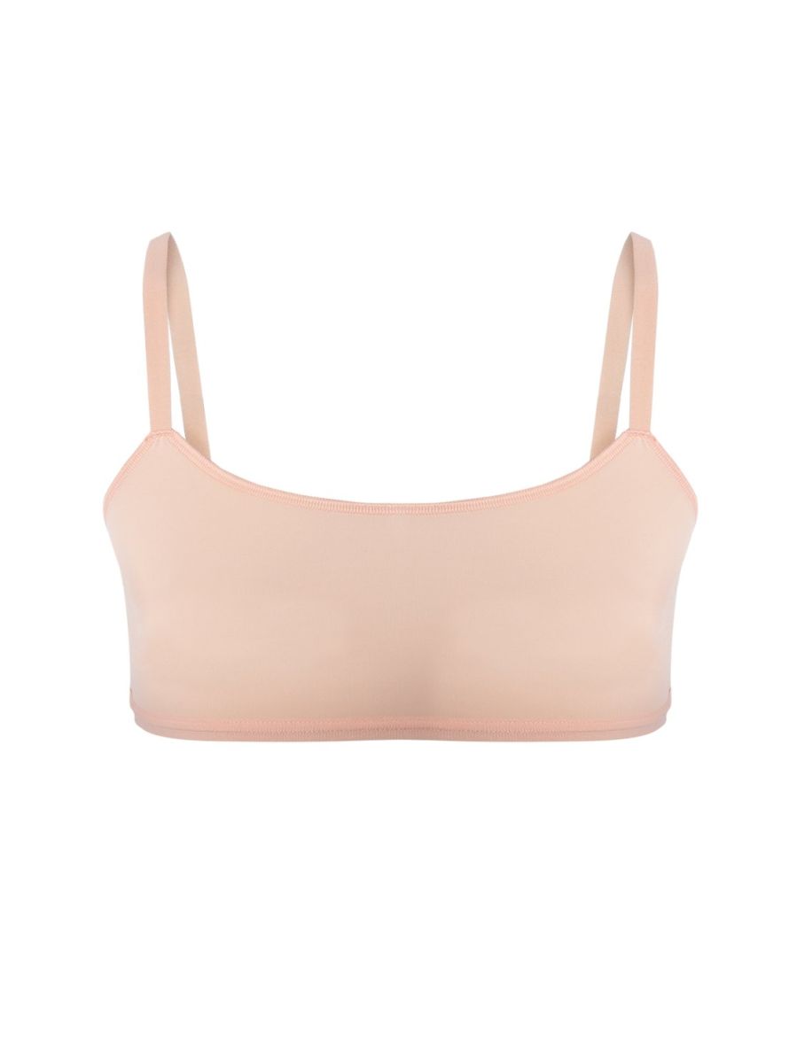 Лиф однослойный бежевого цвета. Эластичные бретели в цвет шириной 1см. Края горловины и проймы обработаны силиконовой лентой, низ лифа из эластичной тесьмы.