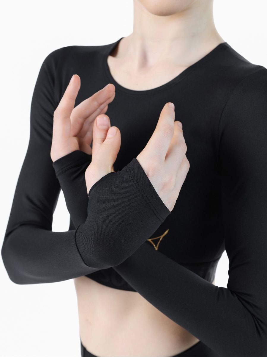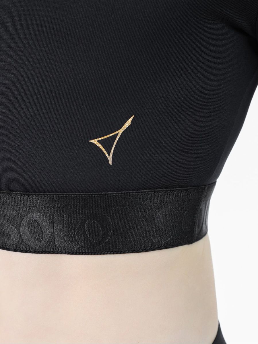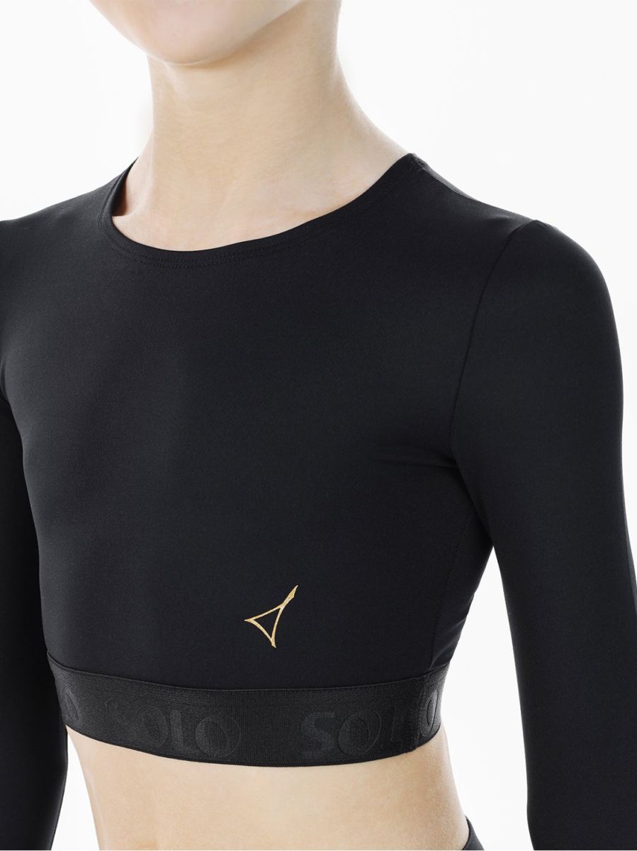 Кроп-топ лонгслив RG656-407. • Облегающий силуэт, полная свобода движений. • Золотистый логотип Solo с левой стороны. • Мягкий эластичный пояс с фирменным лого Solo. • Манжета рукава с прорезью для большого пальца. • Эластичная, дышащая ткань из мерила.