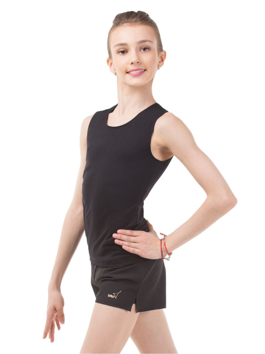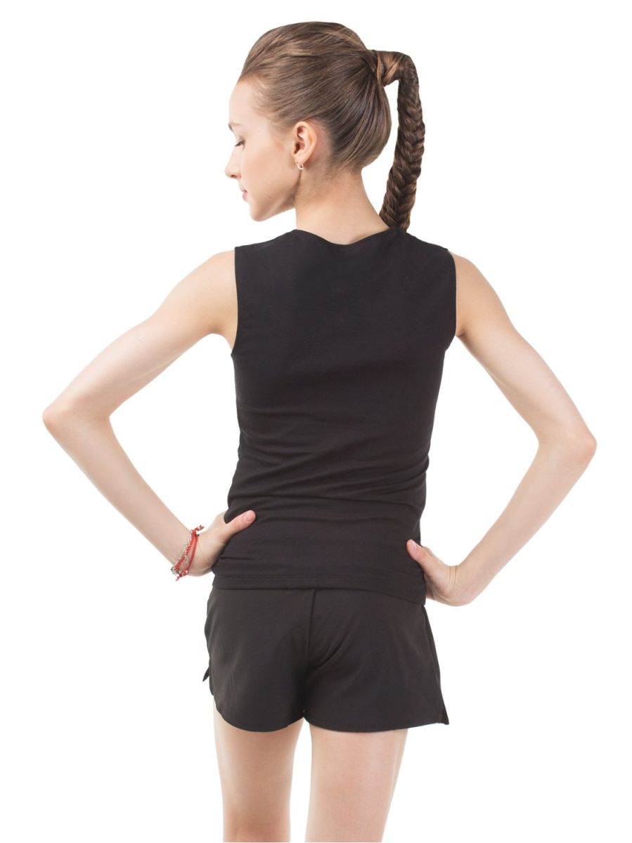 Майка чёрного цвета облегающего силуэта с закрытыми плечами. Защищает плечи от ссадин.