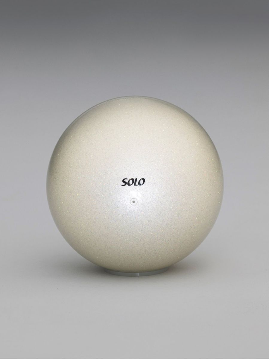 Цветовое описание: мягкий жемчужный белый с деликатным радужным переливом Логотип: чёрный Тип блёсток: радужные Доступные размеры: — 16 см — для юных гимнасток (вес ~300–330 г); — 17 см — для тренировок и отработки техники (вес ~340–370 г). Профессиональный гимнастический мяч SOLO — это сочетание эстетики, надёжности и точной физики отскока. Разработан с учётом требований как начинающих спортсменов, так и опытных гимнасток. Ключевые преимущества: — Идеальное липкое покрытие: уверенное сцепление с ладонью, меньше усилий при контроле — Точная балансировка: стабильная траектория, предсказуемый отскок — Яркий цвет и многослойные блёстки: визуальный объём и глубина сияния — Универсальность: подходит как для младших групп, так и для продвинутых гимнасток — Материал: эластичный, устойчивый к деформациям и стиранию — Оптимальный вес: соответствует стандартам тренировочного инвентаря