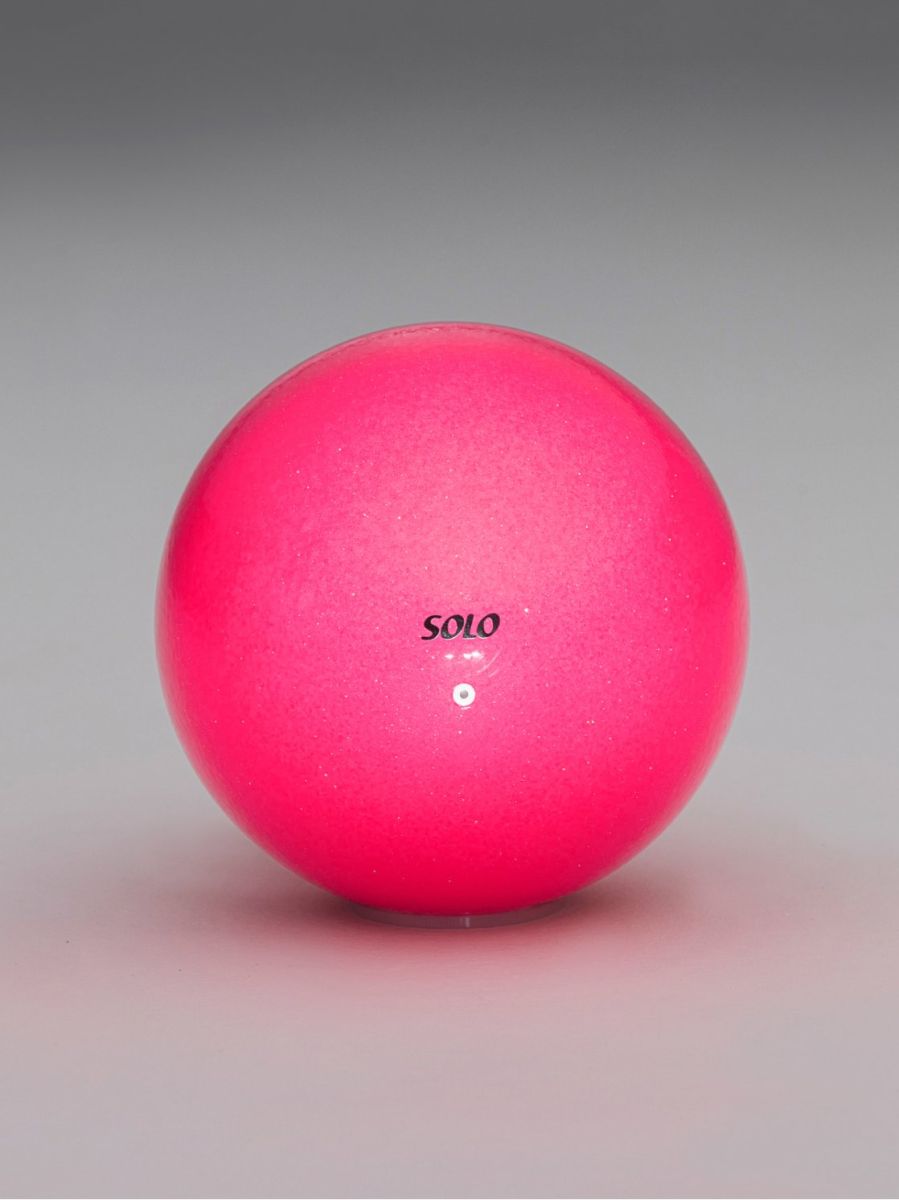 Цветовое описание: яркий флюоресцентный розовый Логотип: чёрный Тип блёсток: светящиеся Доступные размеры: — 16 см — для юных гимнасток (вес ~300–330 г); — 17 см — для тренировок и отработки техники (вес ~340–370 г). Профессиональный гимнастический мяч SOLO — это сочетание эстетики, надёжности и точной физики отскока. Разработан с учётом требований как начинающих спортсменов, так и опытных гимнасток. Ключевые преимущества: — Идеальное липкое покрытие: уверенное сцепление с ладонью, меньше усилий при контроле — Точная балансировка: стабильная траектория, предсказуемый отскок — Яркий цвет и многослойные блёстки: визуальный объём и глубина сияния — Универсальность: подходит как для младших групп, так и для продвинутых гимнасток — Материал: эластичный, устойчивый к деформациям и стиранию — Оптимальный вес: соответствует стандартам тренировочного инвентаря