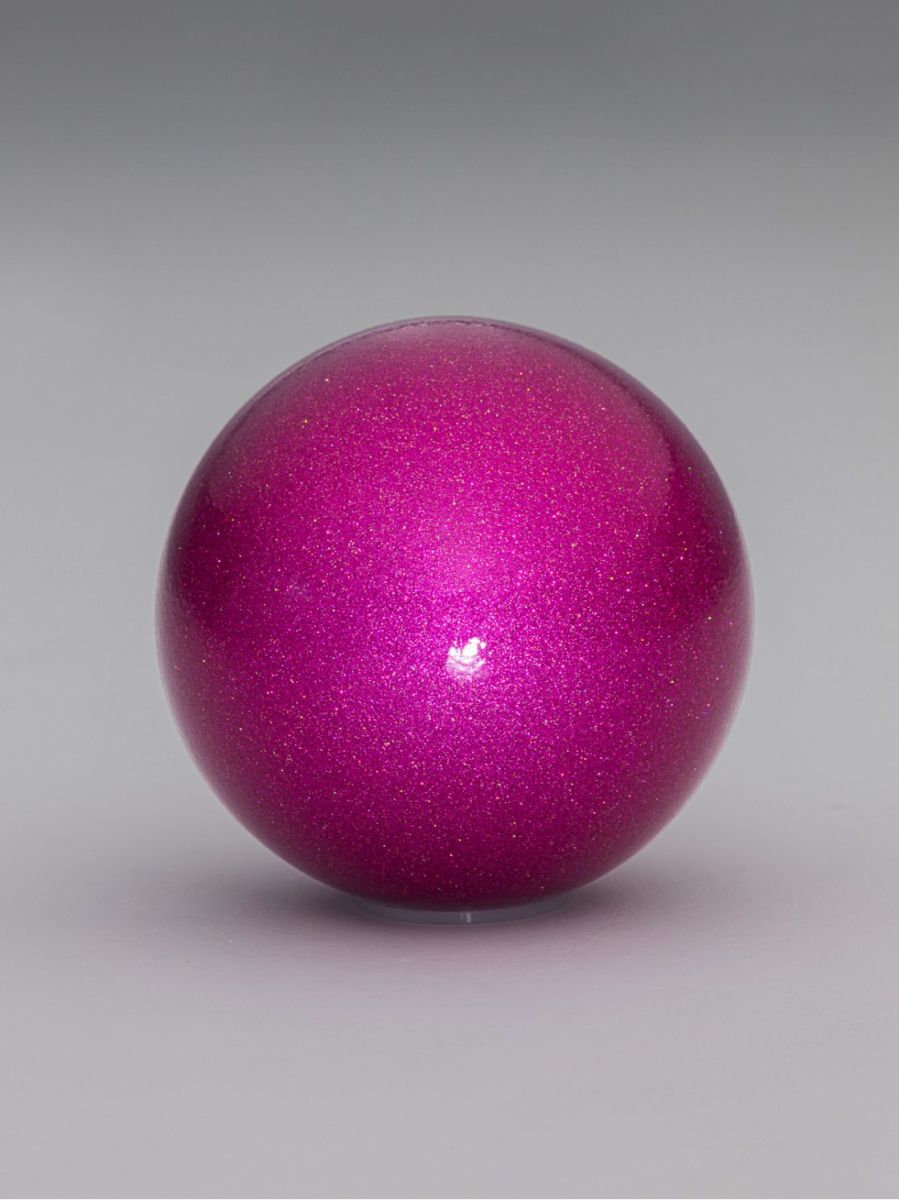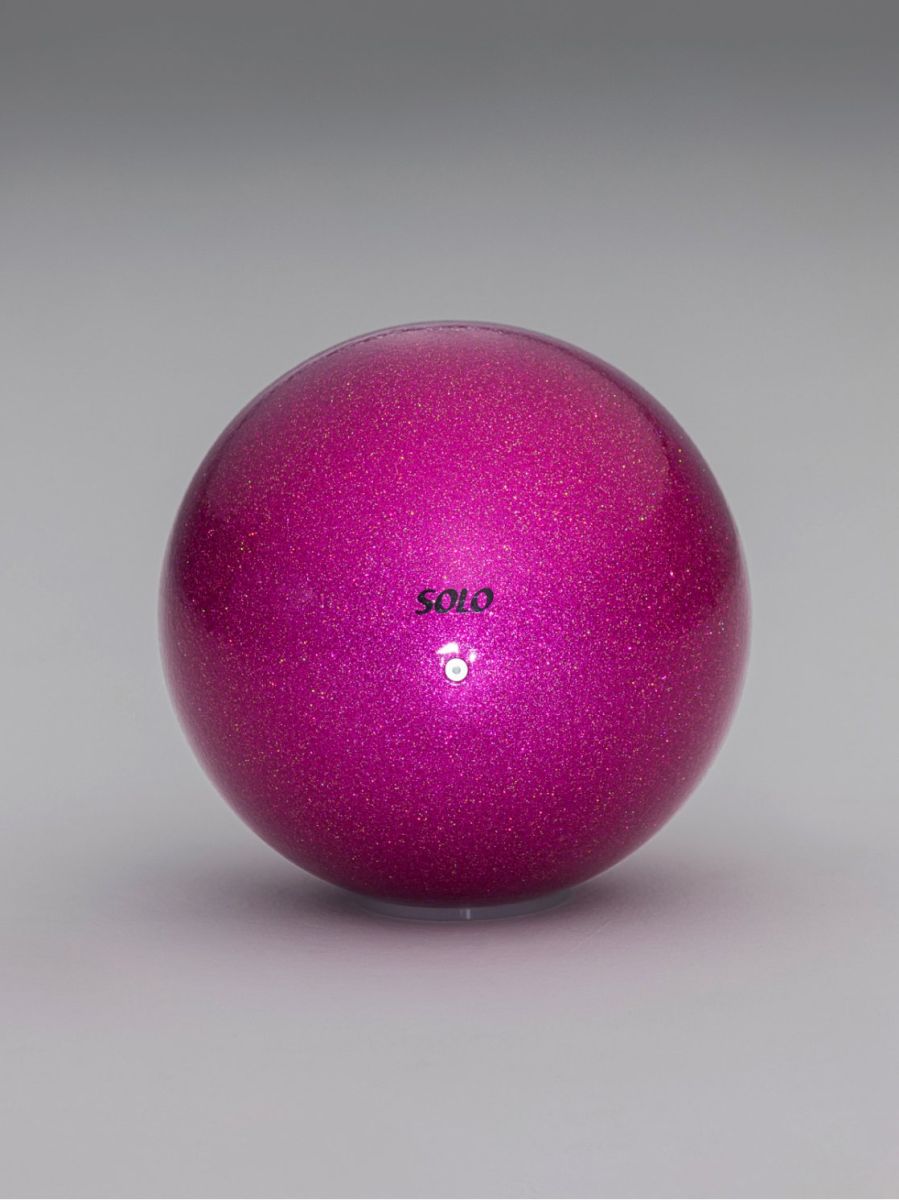 Цветовое описание: насыщенный розово-пурпурный оттенок Логотип: чёрный Тип блёсток: сверкающие Доступные размеры: — 16 см — для юных гимнасток (вес ~300–330 г); — 17 см — для тренировок и отработки техники (вес ~340–370 г). Профессиональный гимнастический мяч SOLO — это сочетание эстетики, надёжности и точной физики отскока. Разработан с учётом требований как начинающих спортсменов, так и опытных гимнасток. Ключевые преимущества: — Идеальное липкое покрытие: уверенное сцепление с ладонью, меньше усилий при контроле — Точная балансировка: стабильная траектория, предсказуемый отскок — Яркий цвет и многослойные блёстки: визуальный объём и глубина сияния — Универсальность: подходит как для младших групп, так и для продвинутых гимнасток — Материал: эластичный, устойчивый к деформациям и стиранию — Оптимальный вес: соответствует стандартам тренировочного инвентаря