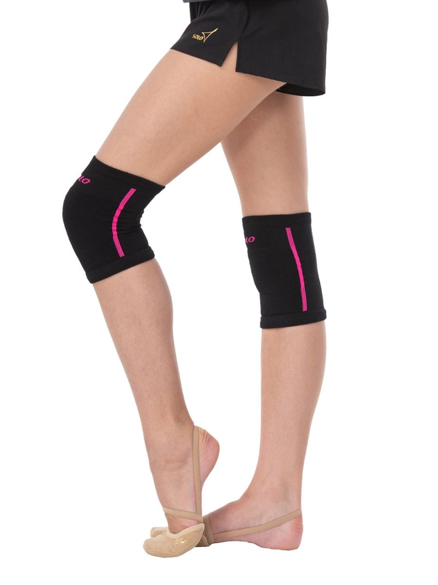 Вязаные наколенники Solo, чёрные с розовыми акцентами Эластичные и износостойкие наколенники с анатомичной посадкой — подойдут для регулярных занятий гимнастикой, танцами и хореографией. Трикотажная структура разработана с учётом нагрузки на сустав: поддерживает мышцы, снижает риск травм и сохраняет комфорт во время движения. Наколенники воздухопроницаемые, с влагоотводящим эффектом. Вертикальные полоски и вышитый логотип в ярком розовом цвете подчёркивают эстетику и придают образу дерзости и выразительности. В комплекте — 1 пара.