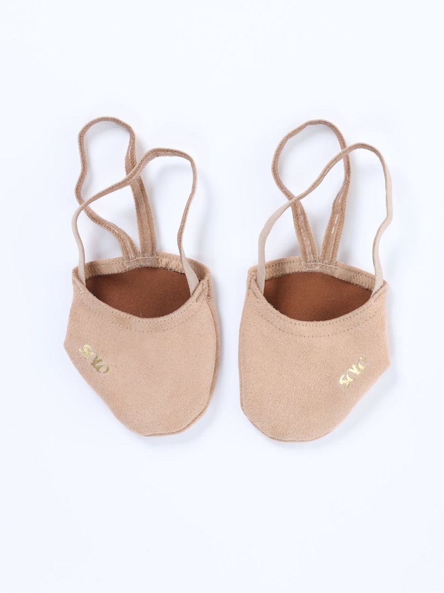 Получешки (полуносочки) из эластичной искусственной замши цвета загара для гимнастики и танцев. Резинки с нанесением силикона для надёжной фиксации на ноге. Особая мягкость и эластичность, повышенная износостойкость. Очень хорошо крутятся. Специальная форма получешек (полуносочков) подчёркивает красоту стопы. Нанесён логотип Solo.