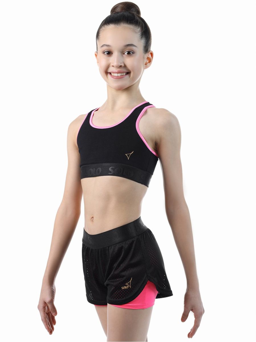 Топ-лиф со спинкой полуборцовкой, дополненный стильной и яркой окантовкой горловины и проймы предназначен для занятий гибкими видами спорта. • Топ дополнен гладкой эластичной лентой с атласным тиснением Solo под грудью. Это обеспечивает плотное прилегание топа и надежную фиксацию, для уверенности и свободы движений. • Передняя часть состоит из двух слоев хлопковой ткани, что обеспечивает умеренную плотность изделия и не просвечивает, сохраняя уверенность в движении. • Стильная атласная окантовка горловины и проймы в цвете розовый неон сделает образ ярким и заметным. • Золотистый логотип SOLO подчеркивает фирменность и высокое качество топ-лифа.