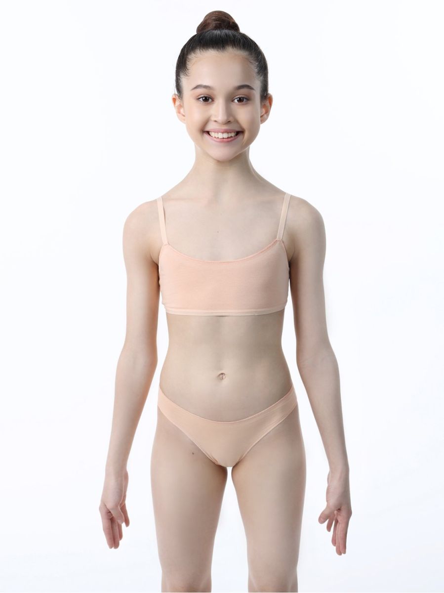 Трусики-миди бежевого цвета с хлопковой ластовицей. Классический окат ножки, край оката обработан силиконовой лентой.