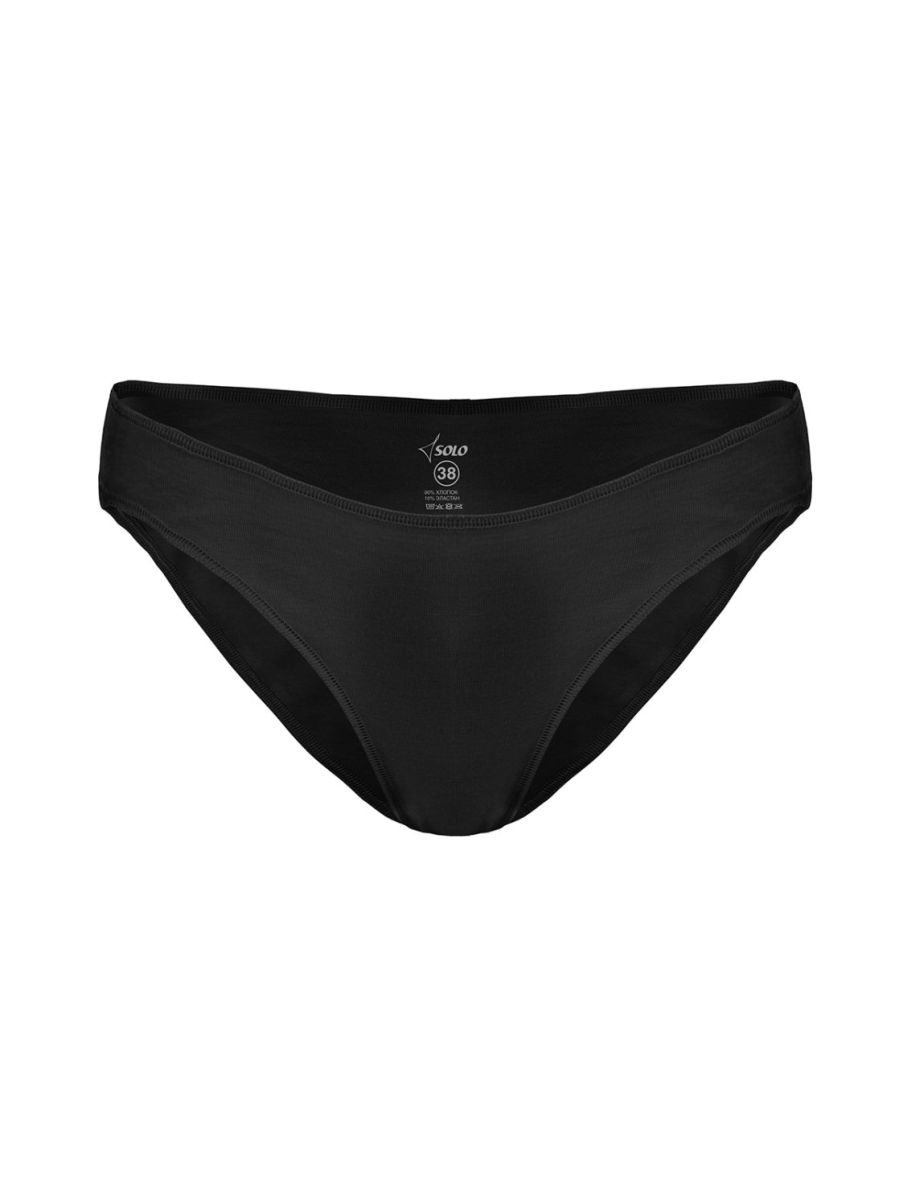 Трусики-миди чёрного цвета с хлопковой ластовицей. Классический окат ножки, края изделия обработаны силиконовой лентой.