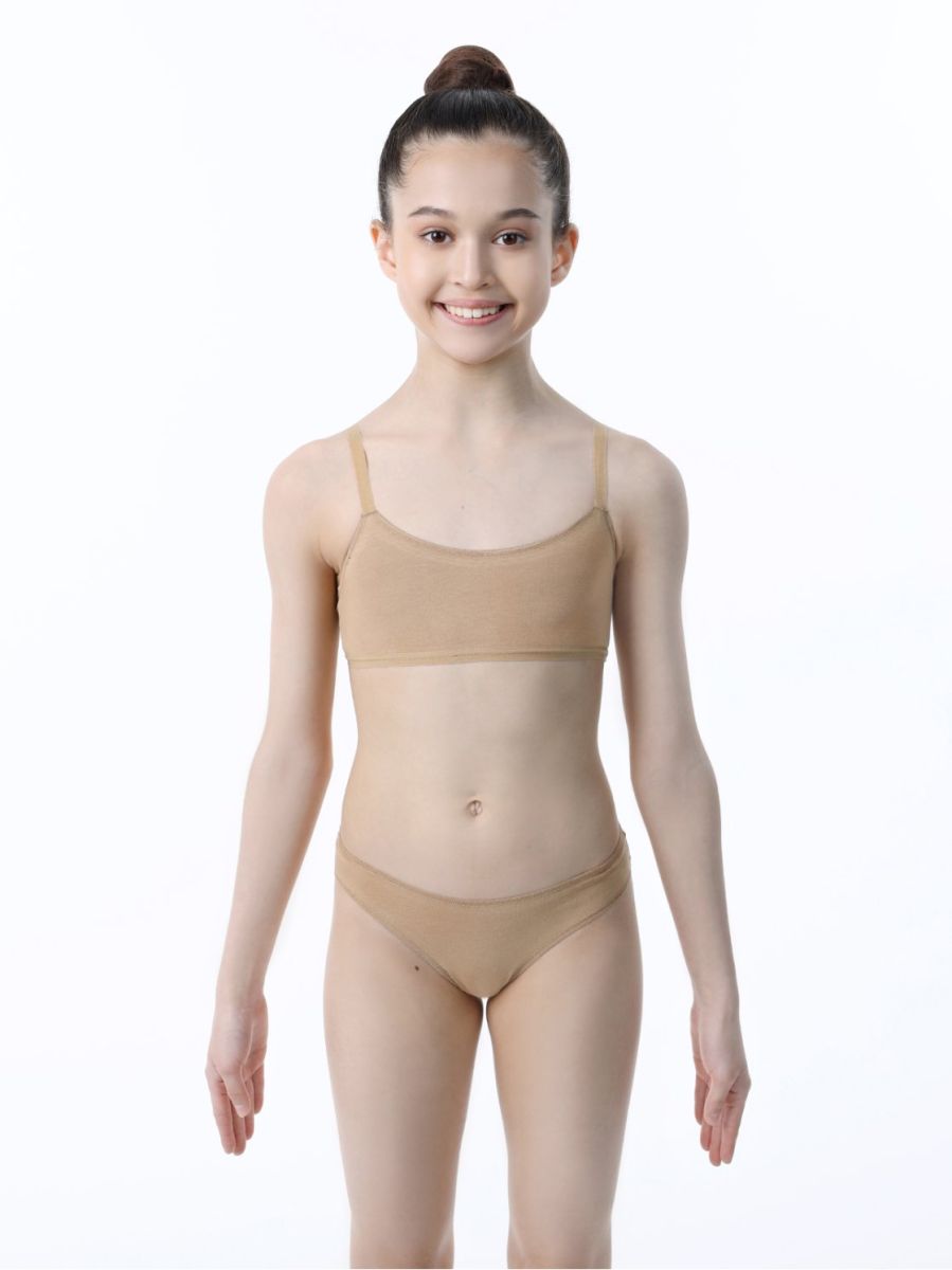 Трусики-миди цвета загар с хлопковой ластовицей. Классический окат ножки, края изделия обработаны силиконовой лентой.