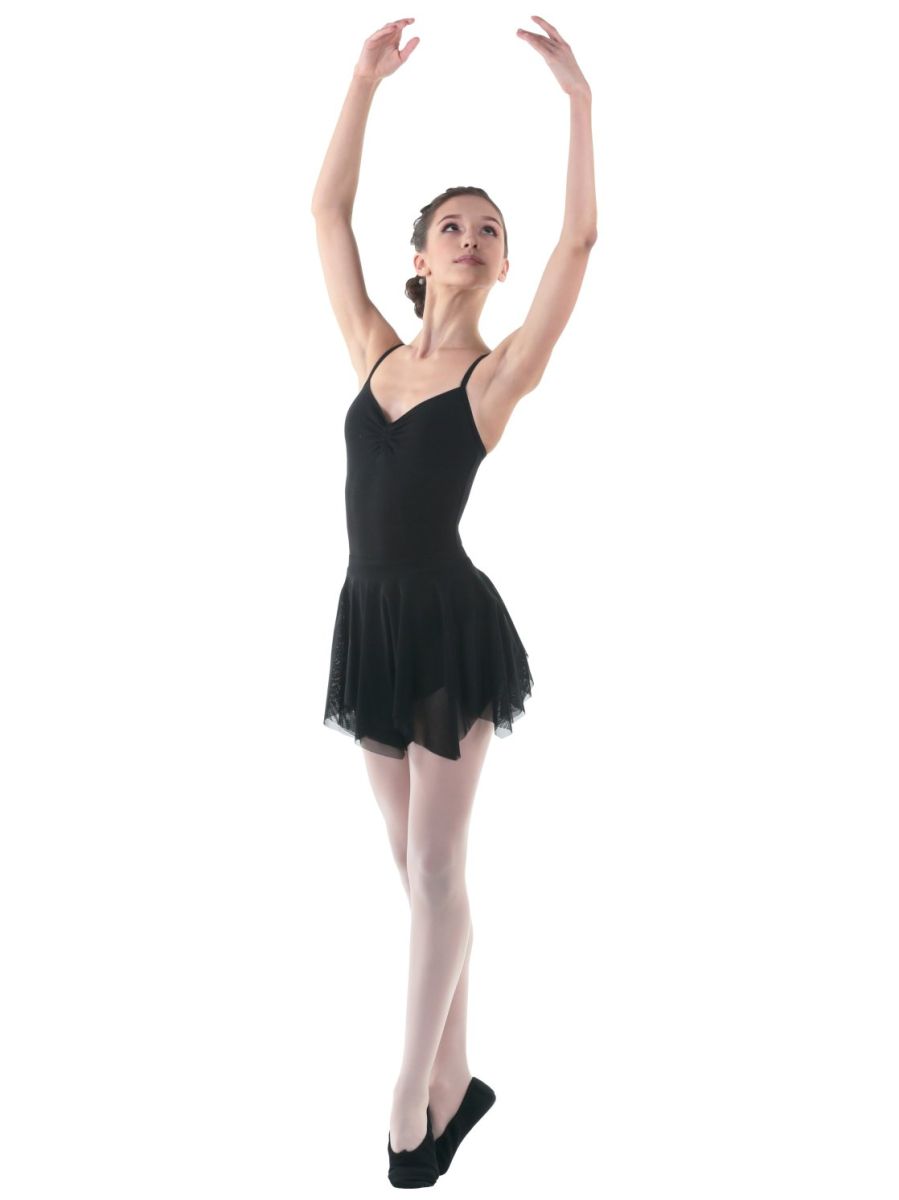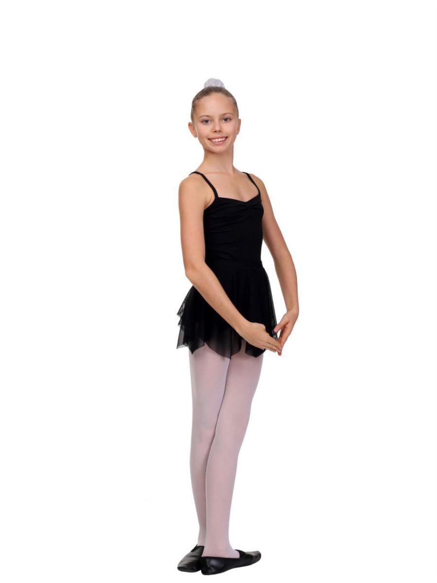 Короткая юбка-лепесток двухслойная полупрозрачная из мелкой сеточки чёрного цвета, с эластичной тесьмой на поясе. Длина в зависимости от размера различается: р 28 – 22,4 см; р 30 – 24,0 см; р 32 – 25,5 см; р 34 – 27,0 см; р 36 – 28,6 см; р 38 – 30,2 см; р 40 – 31,7 см; р 42 – 33,3 см.