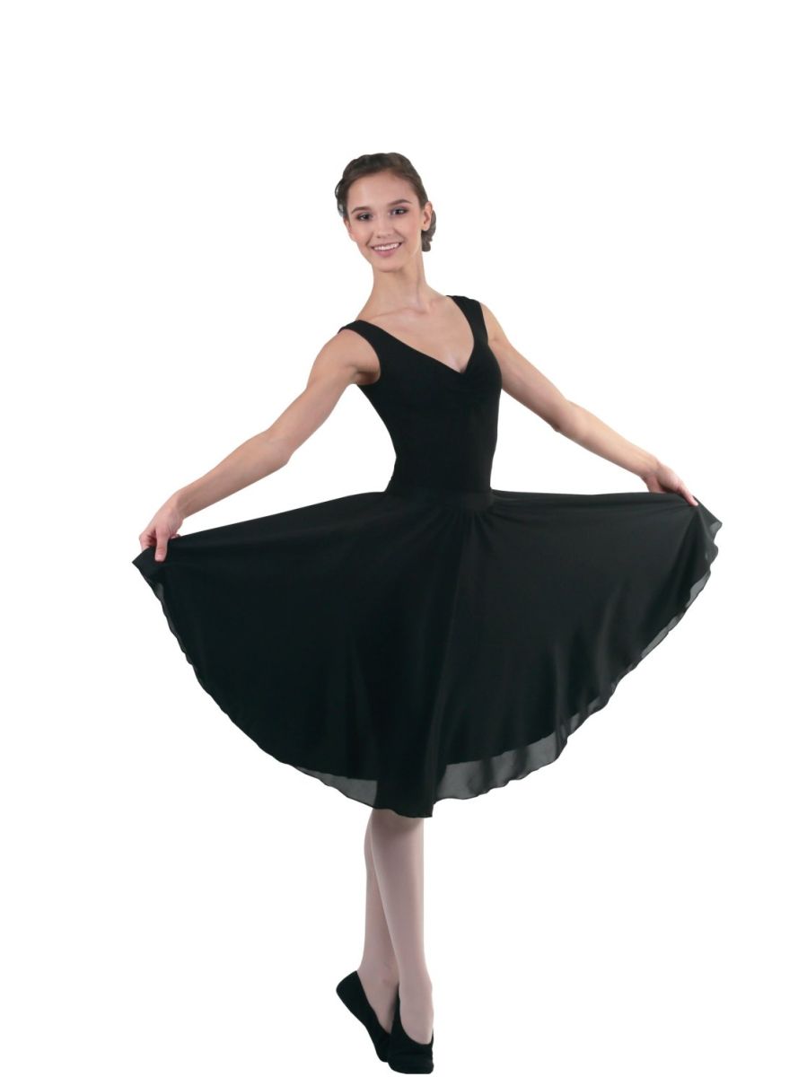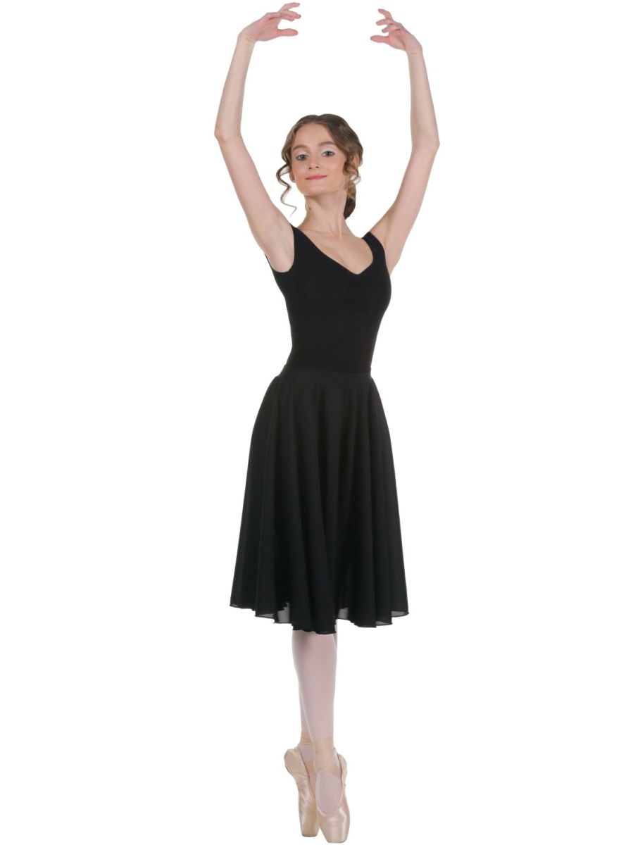 Юбка-солнце с эластичной тесьмой в поясе длиной до середины колена из полупрозрачного шифона чёрного цвета. Длина в зависимости от размера различается: р 28 – 38,5 см; р 30 – 41,1 см; р 32 – 43,6 см; р 34 – 46,2 см; р 36 – 49,7 см; р 38 – 52,3 см; р 40 – 54,8 см; р 42 – 56,3 см; р 44 – 56,4 см; р 46 – 56,6 см; р 48 – 56,8 см.